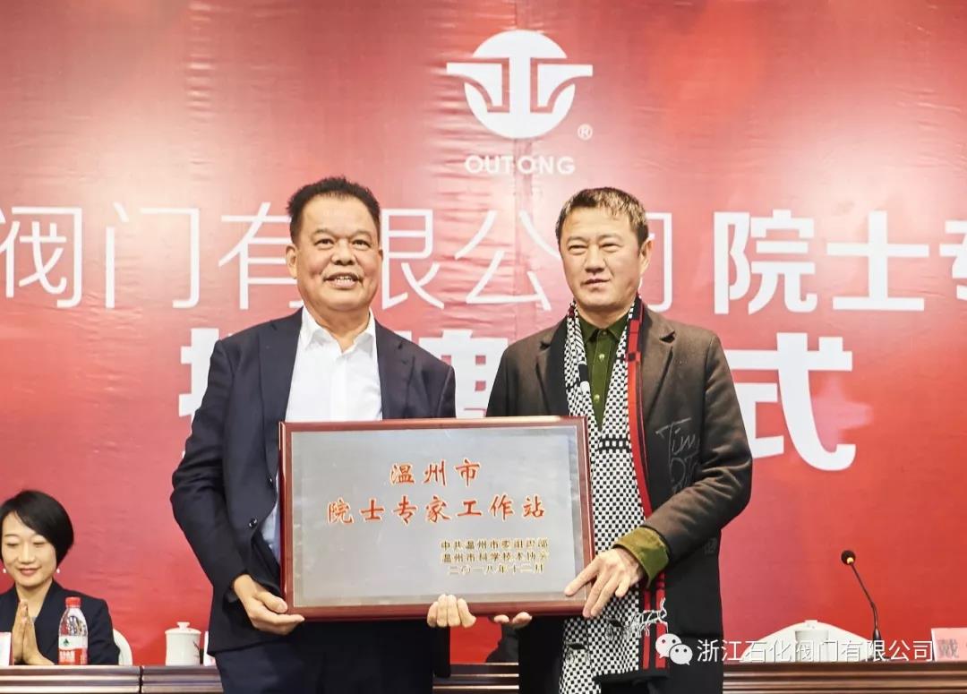 溫州市科協(xié)副主席戴維文向浙江石化閥門(mén)有限公司董事長(zhǎng)楊榮水先生頒授“院士專家工作站”牌匾,浙江石化閥門(mén)有限公司總經(jīng)理?xiàng)钸x榮向中國(guó)工程院陳學(xué)東院士頒發(fā)聘書(shū),就此,院士工作站正式建站。